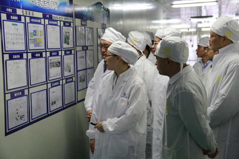 制劑生產(chǎn)總監(jiān)武俊向丁市長(zhǎng)介紹公司精益管理情況