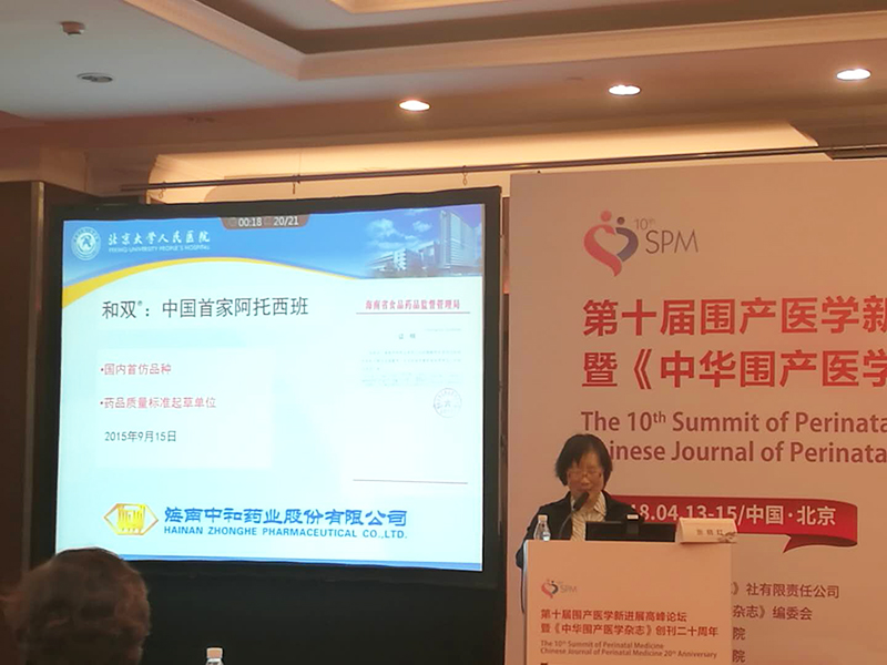 海南中和藥業(yè)股份有限公司攜重磅產品“和雙?醋酸阿托西班注射液”亮相本次會議,獲得全國圍產醫(yī)生的廣泛關注。并特邀北京大學第一醫(yī)院時春艷教授主持,由北京大學人民醫(yī)院張曉紅教授主講專題講座《早產的宮縮抑制劑臨床應用》。張教授先從早產的流行病學開始切入主題,WHO指南及中國的早產指南2014版列入的宮縮抑制劑主要有:①選擇性宮縮抑制劑:和雙?阿托西班;②β2腎上腺素受體興奮劑:利托君;③鈣通道阻滯劑:硝苯地平;④前列腺素合成酶抑制劑 :吲哚美辛;硫酸鎂只作為32周前的神經保護劑使用。張教授認為在維持/重復應用宮縮抑制劑中,和雙?醋酸阿托西班注射液對改善結局有顯著性差異。利托君/硝苯地平與安慰劑組對比,無顯著性差異。和雙?醋酸阿托西班注射液安全性好,應為宮縮抑制劑的最佳選擇。