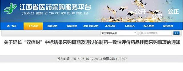 8月10日,江西省發(fā)布《關于延長“雙信封”中標結果采購周期及通過仿制藥一致性評價藥品掛網(wǎng)采購事項的通知》,對通過一致性評價的藥品采購做出了政策支持: