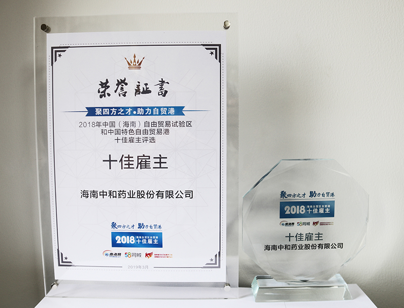 (中和藥業(yè)榮獲2018年海南自貿(mào)(區(qū))港十佳雇主稱號(hào))