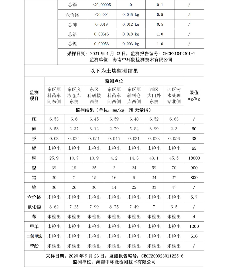海南中和藥業(yè)--2021年海口市重點排污單位環(huán)境信息公開表