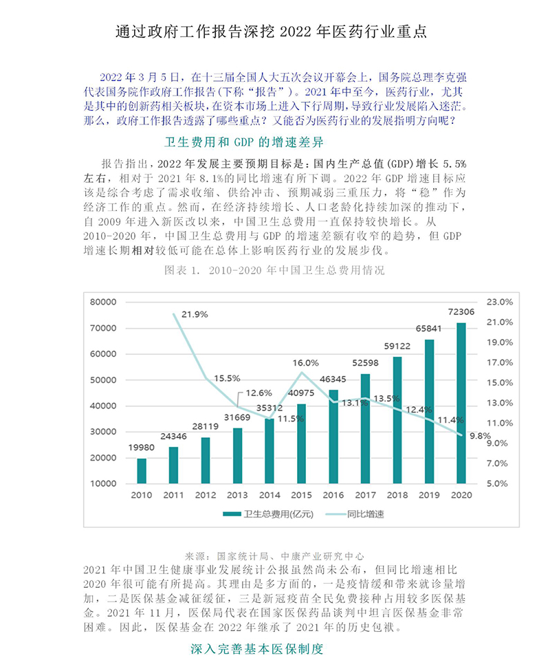 通過政府工作報告深挖2022年醫(yī)藥行業(yè)重點