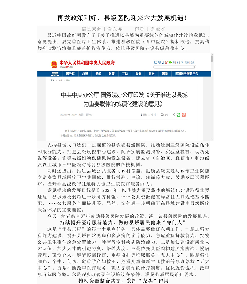 再發(fā)政策利好,縣級(jí)醫(yī)院迎來(lái)六大發(fā)展機(jī)遇