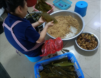 活動現(xiàn)場準備了糯米、粽葉、鮮肉、紅豆等材料,行政后勤科職工十分享受包粽子的過程,數(shù)量大,任務緊的情況下還能聽到活動現(xiàn)場歡聲笑語不斷,仿佛包的不是粽子,而是快樂與愛心。通過此次活動,既傳承了傳統(tǒng)技藝,又切身感受到了濃濃的節(jié)日氣氛,很有意義。