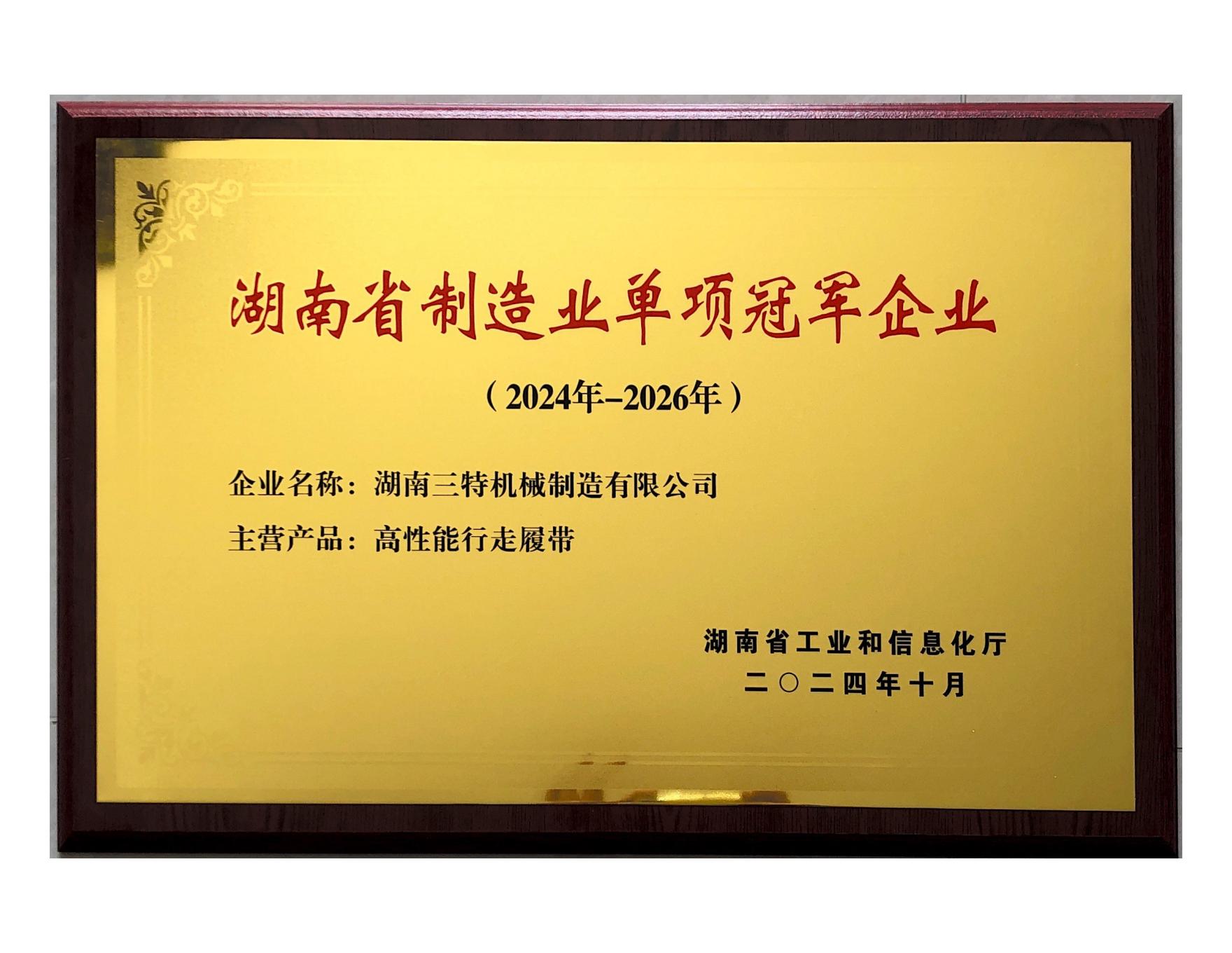 自主研發(fā)的高性能履帶獲評“湖南省單項冠軍產(chǎn)品”