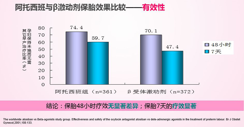 1.阿托西班保胎7天的效果明顯,優(yōu)于β-受體激動(dòng)劑。